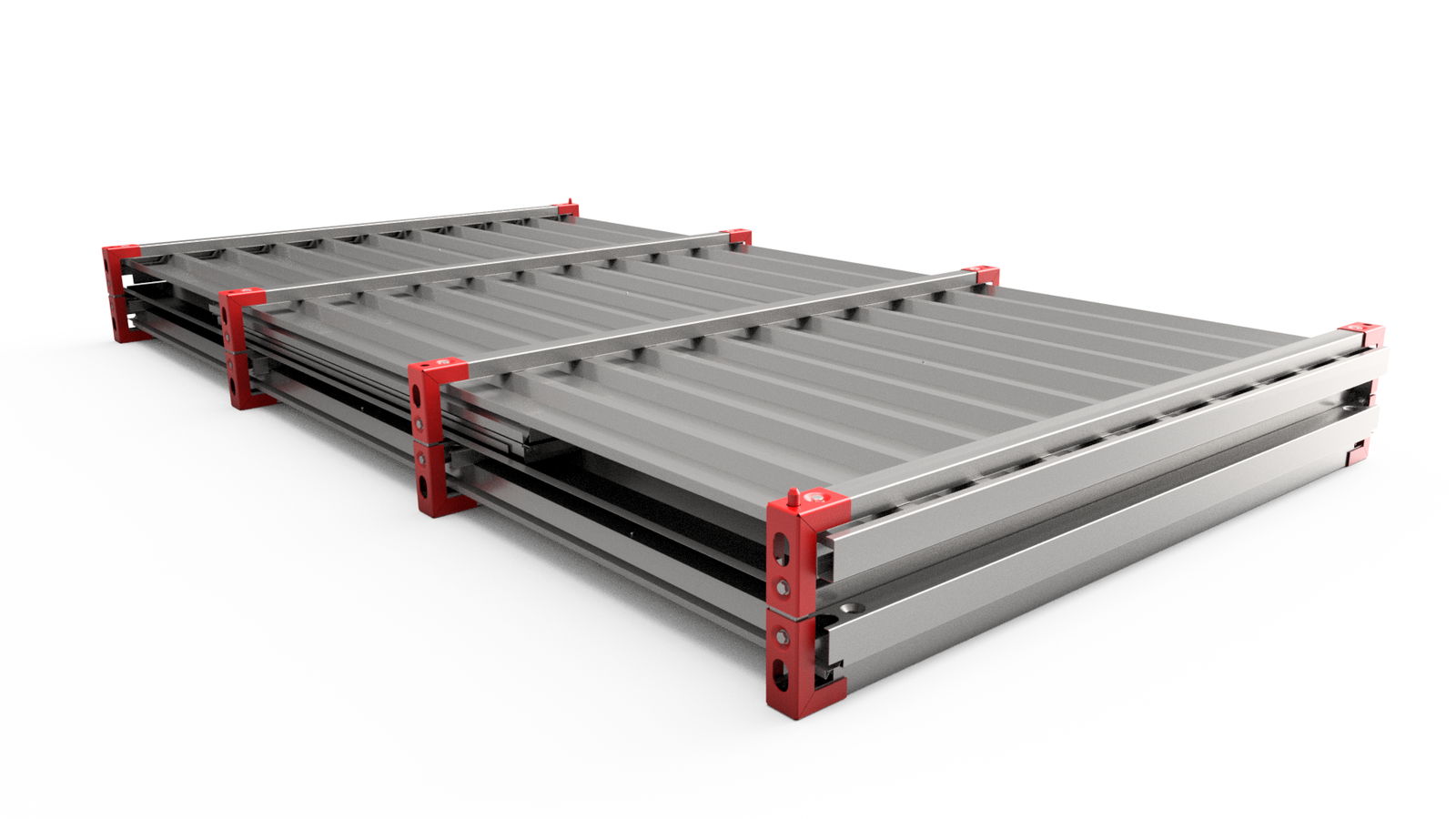 O contentor é fabricado com chapas de aço galvanizado de 0,75 mm de espessura.